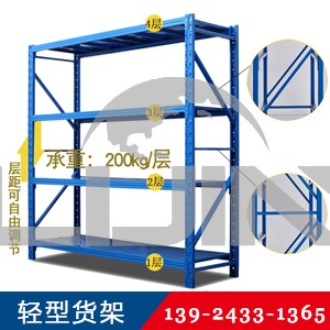 中型貨架,立柱采用60*50菱形孔型設計,每層載重量一般在200~500KG,單個貨架長度不超過2.5米,深度1米左右,... 詳情